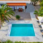 Willa Evgenias Olive House Kalathos dysponuje tarasem z widokiem na morze oraz basenem.
